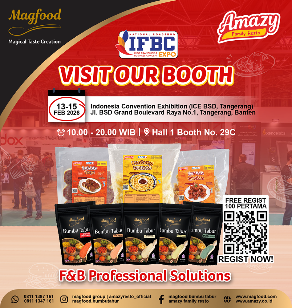 Rp 15.000 – Rp 2.000.000Magfood Saus bolognese merupakan saus serbaguna yang dapat ditambahkan pada berbagai jenis masakan seperti ayam goreng, udang, beef steak, dan masakan lainnya. saus bolognese magfood dijual dalam bentuk powder sehingga memiliki umur simpan yang panjang, mudah penyimpanan, dan mudah dalam pengaplikasiannya. Sangat cocok bagi pelaku usaha resto yang perlu menyimpan persediaan bahan baku agar tidak mudah rusak dan tidak harus disimpan dalam suhu dingin. Memadukan rasa gurih dari berbagai bumbu dan rempah pilihan. Kualitas rasa tidak kalah dengan saus dalam bentuk liquid. ÂPilih opsiRp 22.500 – Rp 41.000Magfood tepung bumbu merupakan tepung serbaguna yang dapat diaplikasikan pada berbagai jenis bahan seperti untuk membuat perkedel jagung, tempe mendoan, ayam goreng, keripik bayam, dan makanan lainnya. Tepung ini sudah mengandung berbagai jenis perasa dan rempah-rempah sehingga mudah diaplikasikan dan tidak perlu dilakukan penambahan bumbu lainnya. Magfood Tepung Bumbu membuat aneka gorengan menjadi garing dan renyah. Kemasan 1 kg ,bisa dilarutkan dalam air 1 liter. Komposisi: Pati, Tepung terigu, Penguat rasa, Garam, rempah-rempahPilih opsiRp 29.000 – Rp 54.000Premix bakso ini memudahkan anda yang ingin memulai usaha bakso namun terkendala dalam uji coba resep, standarisasi yang belum pasti, atau tidak praktisnya mempersiapkan berbagai bahan baku. Premix bakso sudah berbumbu menggunakan bahan-bahan pilihan sehingga membuat bakso memiliki cita rasa yang enak. PIRT 5113171010132-25 Magfood Premix bakso merupakan campuran tepung, bumbu, dan pengenyal yang membuat siapa saja bisa membuat bakso. Premix sudah dilengkapi dengan resep dan cara pembuatan yang sesuai. Tidak perlu ditambahkan bumbu ataupun bahan lainnya. Komposisi: Pati-patian, Garam, Rempah-rempah, Sodium tripoliphosphatePilih opsiRp 11.000 – Rp 59.000Magfood kaldu sapi siap pakai untuk penambah rasa di berbagai tumisan dan sup dapat diaplikasikan untuk kuah bakso, soto dan kari Kaldu sapi MSG mengandung penyedap rasa yang pas, aman untuk dikonsumsi dan tanpa bahan pengawet. Komposisi: Garam, rempah-rempah, Ekstrak daging sapi, Penguat rasa (mengandung protein nabati terhidrolisis dan ekstrak ragi), Bubuk rasa sapi, Anti gumpal.Pilih opsiRp 30.000 – Rp 56.000Premix bakso ini memudahkan anda yang ingin memulai usaha bakso namun terkendala dalam uji coba resep, standarisasi yang belum pasti, atau tidak praktisnya mempersiapkan berbagai bahan baku. Premix bakso sudah berbumbu menggunakan bahan-bahan pilihan sehingga membuat bakso memiliki cita rasa yang enak. PIRT 5113171010132-25 Magfood Premix bakso Tanpa Penguat Rasa merupakan campuran tepung, bumbu, dan pengenyal yang membuat siapa saja bisa membuat bakso. Premix sudah dilengkapi dengan resep dan cara pembuatan yang sesuai. Tidak perlu ditambahkan bumbu ataupun bahan lainnya. Komposisi: Pati-patian, Garam, Rempah-rempah, Sodium tripoliphosphatePilih opsiRp 15.000 – Rp 86.000Kaldu Ayam tanpa penguat rasa Magfood adalah bumbu masak dengan bahan baku pilihan. Menyajikan rasa gurih dengan flavor khas daging ayam. Rasa gurih pada bumbu ini perpaduan antara rempah-rempah, bubuk daging ayam, dan berbagai bumbu lainnya. Dapat ditambahkan pada berbagai masakan seperti sayur, sup, kuah bakso, dan berbagai masakan lainnya. Tidak mengandung bahan pengawet. Bumbu kaldu Ayam tanpa penguat rasa cocok untuk gaya hidup sehat. Komposisi: Garam, Gula, Bubuk rasa ayam, Maltodekstrin, minyak hewani, rempah-rempah, Anti gumpal, Protein nabati terhidrolisisPilih opsiRp 23.500 – Rp 43.000Magfood tepung ayam merupakan tepung berbumbu yang dapat digunakan untuk membuat ayam goreng khas fast food. Setifikat Halal No. ID00210000095190920 Depkes RI PIRT 5113171010132-25 Komposisi: Tepung terigu, Garam, rempah-rempah, Sodium bikarbonat, Penguat rasa, Gula Cocok untuk digunakan pada: - Ayam goreng crispy - Kentang goreng - Jamur, tahu, tempe dan aneka gorengan lainnyaPilih opsiRp 11.000 – Rp 50.000Kaldu ayam magfood adalah bumbu masak dengan bahan baku pilihan yang memadukan rempah-rempah, bubuk daging ayam dan berbagai bumbu lainnya, menyajikan rasa gurih dengan flavor khas daging ayam. Dapat ditambahkan pada berbagai masakan seperti sayur, sup, kuah bakso, dan berbagai masakan lainnya. Komposisi: Garam, Maltodekstrin, Penguat rasa (monosodium glutamat, ekstrak ragi), Gula, rempah-rempah, minyak hewaniPilih opsi